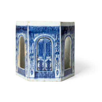 清 青花門戶瓔珞紋六角器座