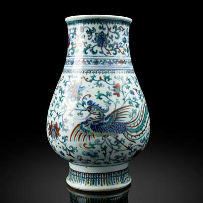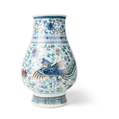 RARE CHINESE DOUCAI 'DOUBLE PHOENIXES' VASE, ZUN