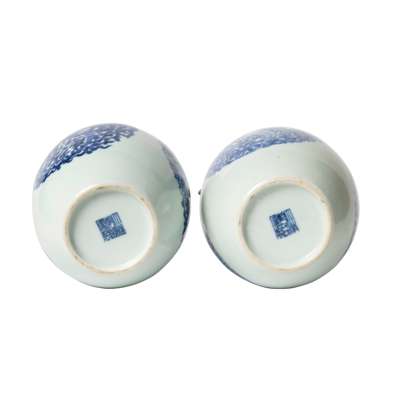 PAIR OF CHINESE BLUE AND WHITE 'PHOENIXES' JARS