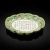 嘉慶款或到代 洋彩綠地御製詩文海棠式茶盤