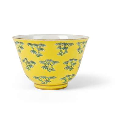 CHINESE YELLOW-GROUND GREEN-ENAMELLED 'BAMBOO' CUP