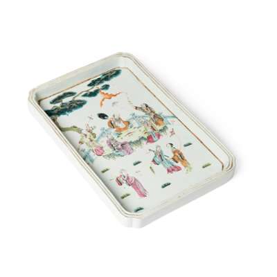 CHINESE FAMILLE ROSE 'EIGHT IMMORTALS' RECTANGULAR TRAY