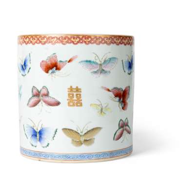 CHINESE FAMILLE ROSE 'BUTTERFLY' BRUSH POT