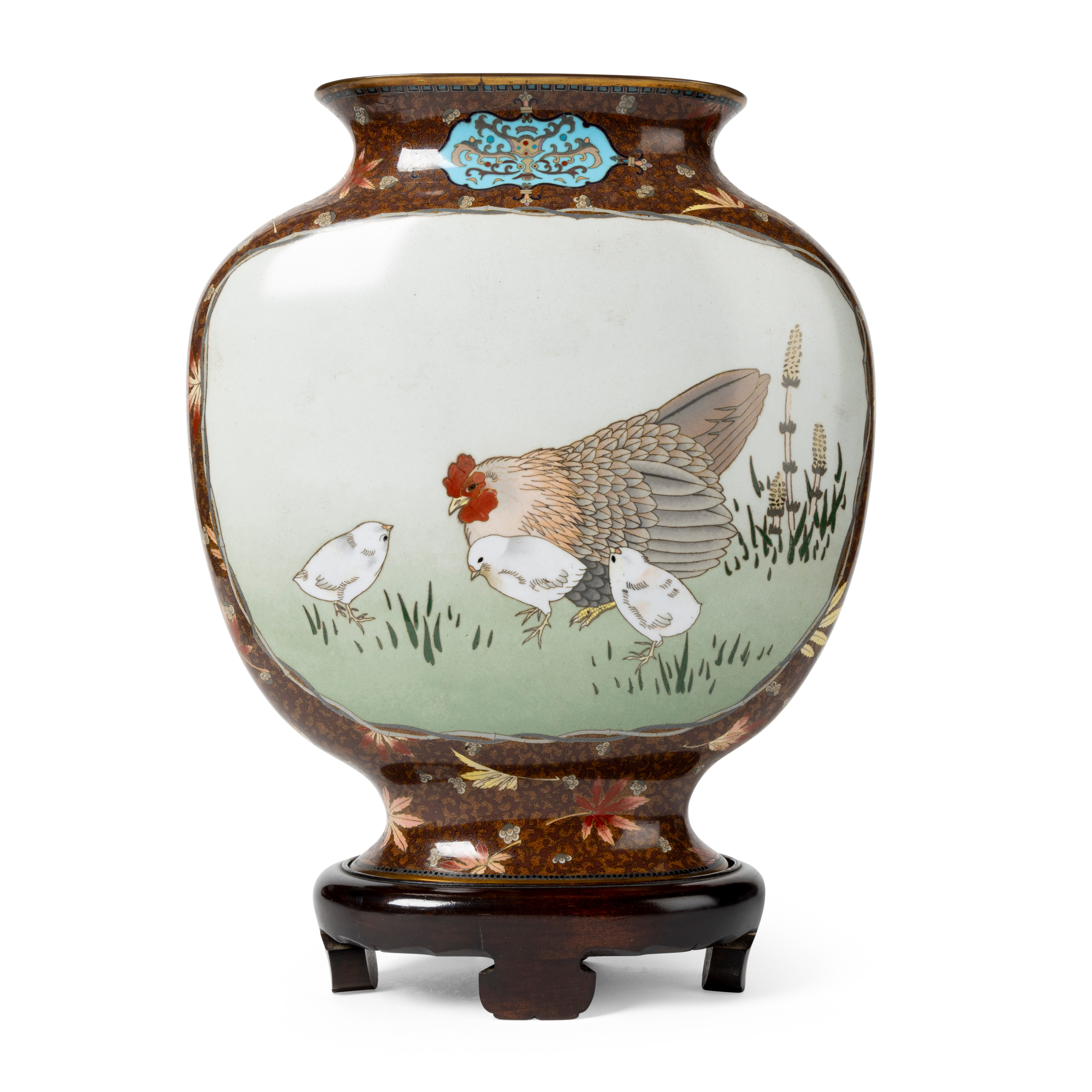 JAPANESE CLOISONNÉ ENAMEL 'CHICKEN AND DUCK' VASE