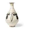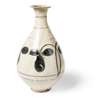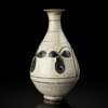 This Buncheong bottle features a full body covered in white slip, decorated with a painterly motif of peony leaves in rich iron oxide pigment, a style that is closely tied to the kilns of sacred Mount Gyeryong, located near Hakbong-ri, west of Daejeon. The craftsmanship reflects a pivotal period in Korean history, particularly after the early Joseon Dynasty rulers shifted from Buddhism to Confucianism. This transition forced many Buddhist monks back into secular life, with some former monks from Gyeryong establishing kilns to create Buncheong pottery. Renowned for its fresh and spontaneous aesthetic, this bottle exemplifies the quick decoration methods used by artisans who frequently employed simple iron oxide designs against a cream-coloured backdrop. These wares were admired for their immediacy and natural charm, marking a unique moment in Korean ceramic art. Iron-painted Buncheong was produced for a short duration in Hakbong-ri, from the late 15th to the early 16th century. Following this period, the kilns shifted exclusively to porcelain production, making pieces like this Buncheong bottle highly sought after by collectors due to their rarity and historical importance. Pieces with similar motifs could be found in the collections of the National Museum of Korea, accession no. Bongwan 12457 and the Minneapolis Institute of Art, accession no. 2015.79.494. Comparable bottles were sold by Bonhams, 15 March 2017, lot 7042 and Auction Artbank, Korea, 16 December 2009, lot. 23