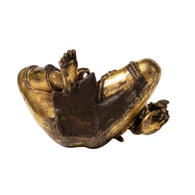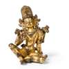 A highly comparable fifteenth-century Nepalese gilt copper Indra, note the similarity of the posture, hand gestures, jewellery, flower design and size, sold at Sotheby's New York, 22 September 2020, lot 321. Also see an example formerly in the Nasli and Alice Heeramaneck Collection and now in the Los Angeles County Museum of Art, museum number M.69.13.4.