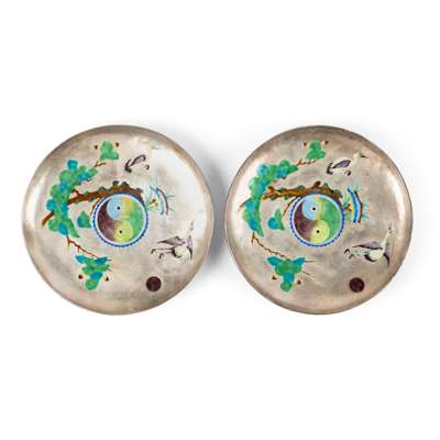 清末民初 「重慶 方九霞」款 外銷銀加彩松鶴太極圖盤(一對)