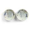 each inscribed in the central medallion with an Imperial poem, painted to the sides with a scene of Jia Chang calling to the chickens surrounded by rockwork and peony, the exterior in a faux bois design, with a turquoise enamelled foot enclosing a six-character Qianlong mark (2)