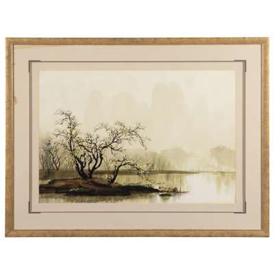何鎮強 《二月陽朔》及《峽江勝境》 紙本設色 鏡框(兩幅)