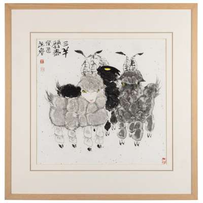 王迎春 《三羊開泰》 紙本設色 鏡框