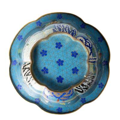清 銅胎掐絲琺瑯花鳥紋瓜棱型花口盆