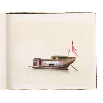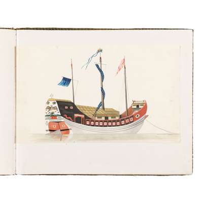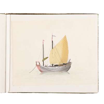 watercolour on paper, depicting various boats and junks, with an associated silk-bound album (7)