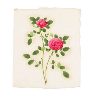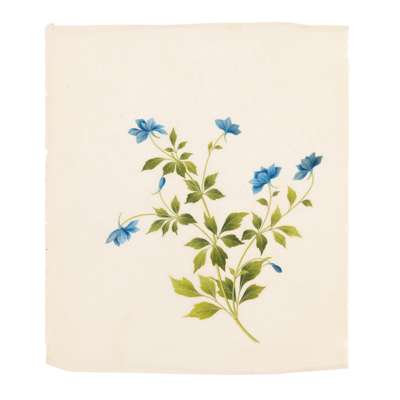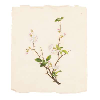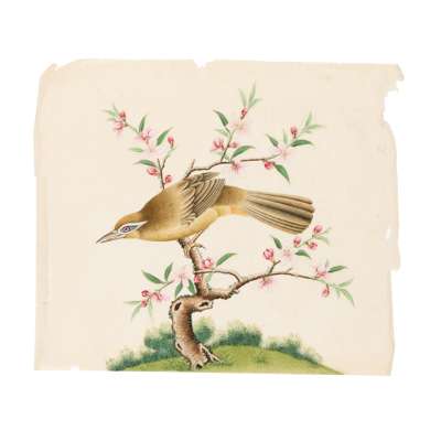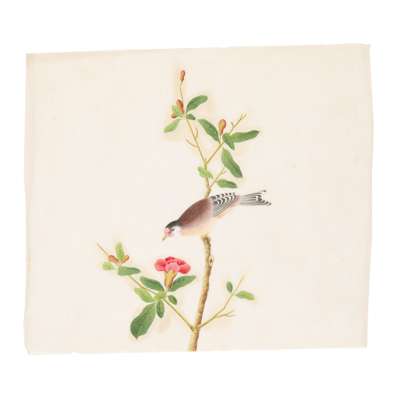 comprising eleven watercolour on paper, including nine botanical studies painted vertically; two horizontal depicting birds perching on flowering branches; and a gouache on pith paper depicting butterfly and flowers (12)