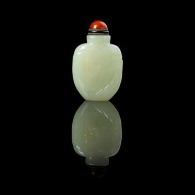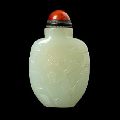 十九至二十世紀 青白玉雕仙人松樹紋鼻煙壺