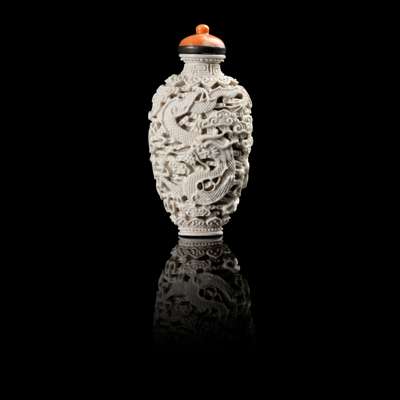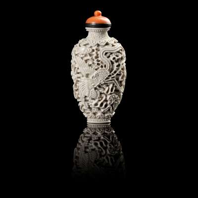 清乾隆 瓷胎模印白釉鏤雕龍鳳呈祥紋鼻煙壺