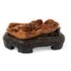 清 梁清標款 壽山石雕山水人物擺件 帶紫檀座