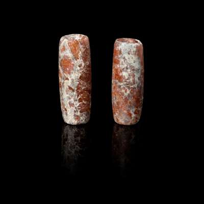 [PRIVATE ENGLISH COLLECTION, ENGLAND] PAIR OF CHINESE JAED TUBULAR BEADS