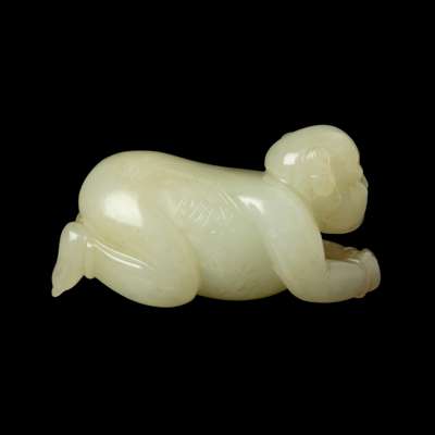 CHINESE WHITE JADE CARVING 'BABE' BRUST REST