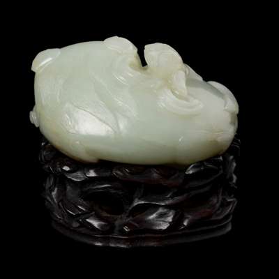 十七/十八世紀 青白玉雕佛獅 帶木座