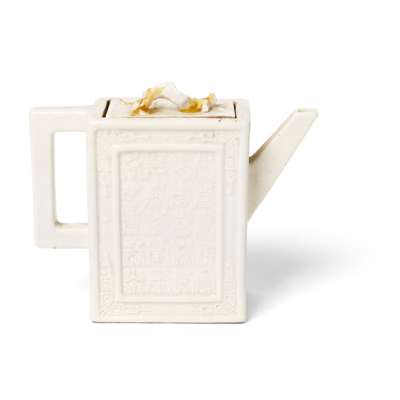 清 宋定款 白定釉模印百壽紋長方帶蓋茶壺
