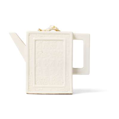 CHINESE MOULDED SOFT-PASTE WHITE-GLAZED ‘LONGEVITY’ TEAPOT