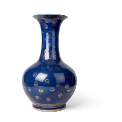 CHINESE POWDER-BLUE-GLAZED GILT-DECORATED BOTTLE VASE