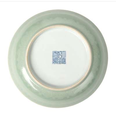 清乾隆款及年代 粉青釉刻如意雲紋盤