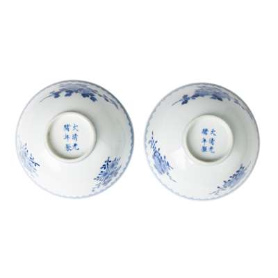 清光緒款及年代 青花花卉紋碗(一對)