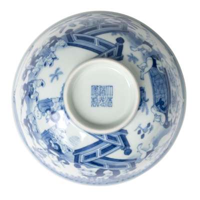 道光款或到代 青花百子圖碗