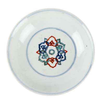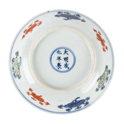 清 成化款 五彩靈芝紋蝶