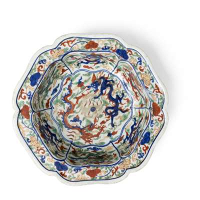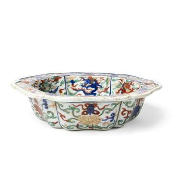 CHINESE WUCAI 'DRAGON' LOBED BASIN