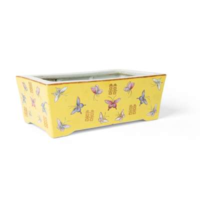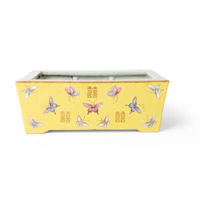 清光緒款及年代 黃地粉彩百蝶雙喜紋長方盆