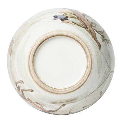 painted on one side of the lower bigger bulb with three figures, of which two on horseback, reverse with a tree and craggy rocks