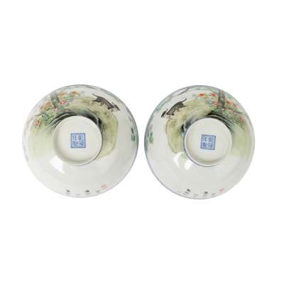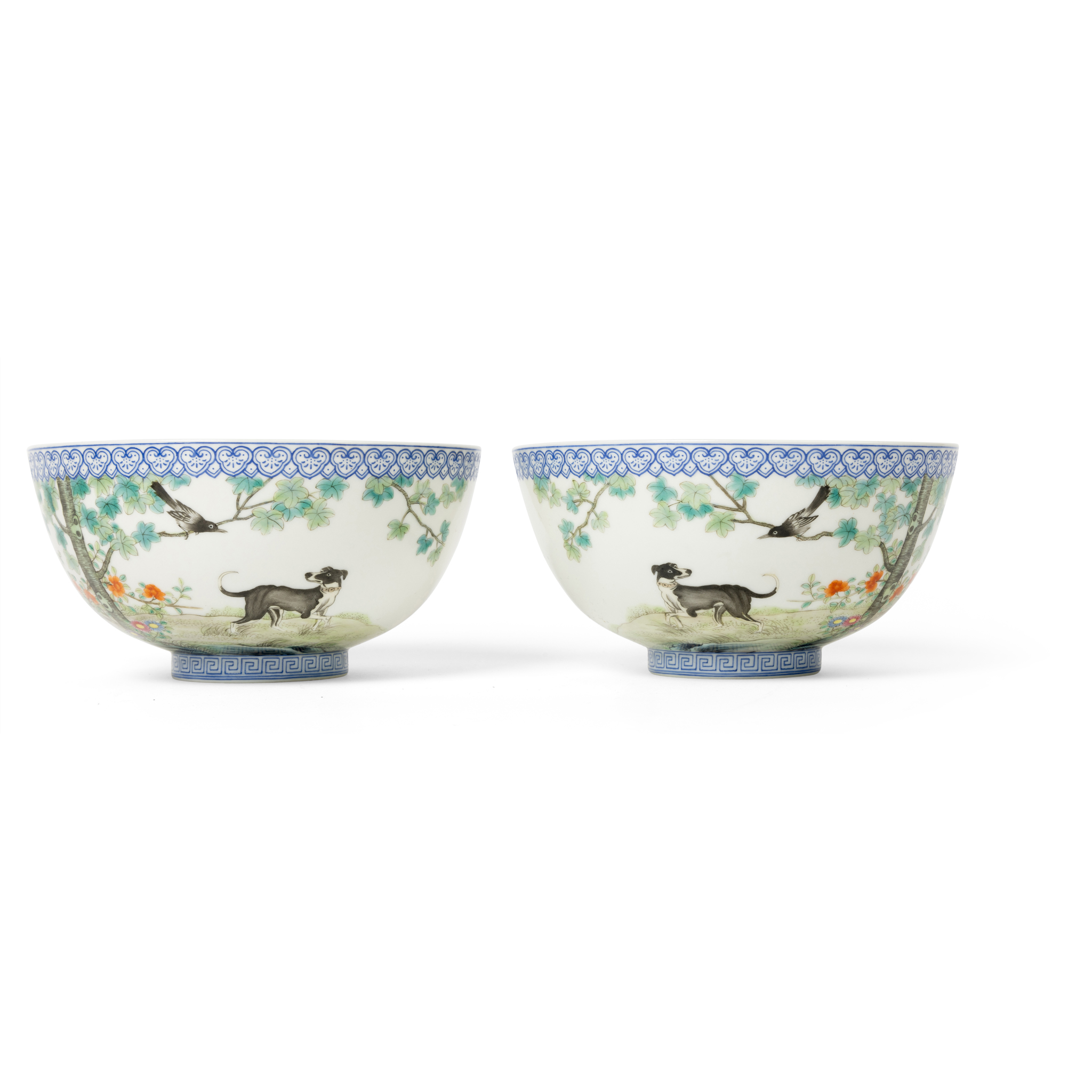 PAIR OF CHINESE FAMILLE ROSE EGGSHELL 'HOUND' BOWLS