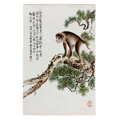 CHINESE FAMILLE ROSE 'MONKEY' PORCELAIN PLAQUE