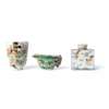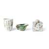 清 綠彩《鍾情麗集》杯、素三彩花卉紋貼塑甪端匜 及 五彩雉雞花卉紋方蓋罐(共三件)