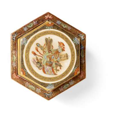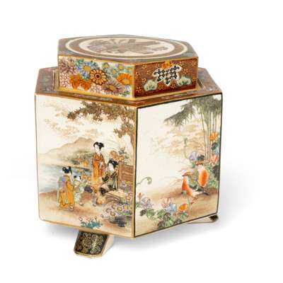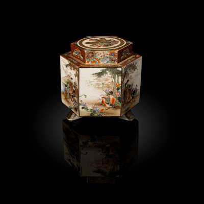 JAPANESE SATSUMA HEXAGONAL CADDY WITH COVER
