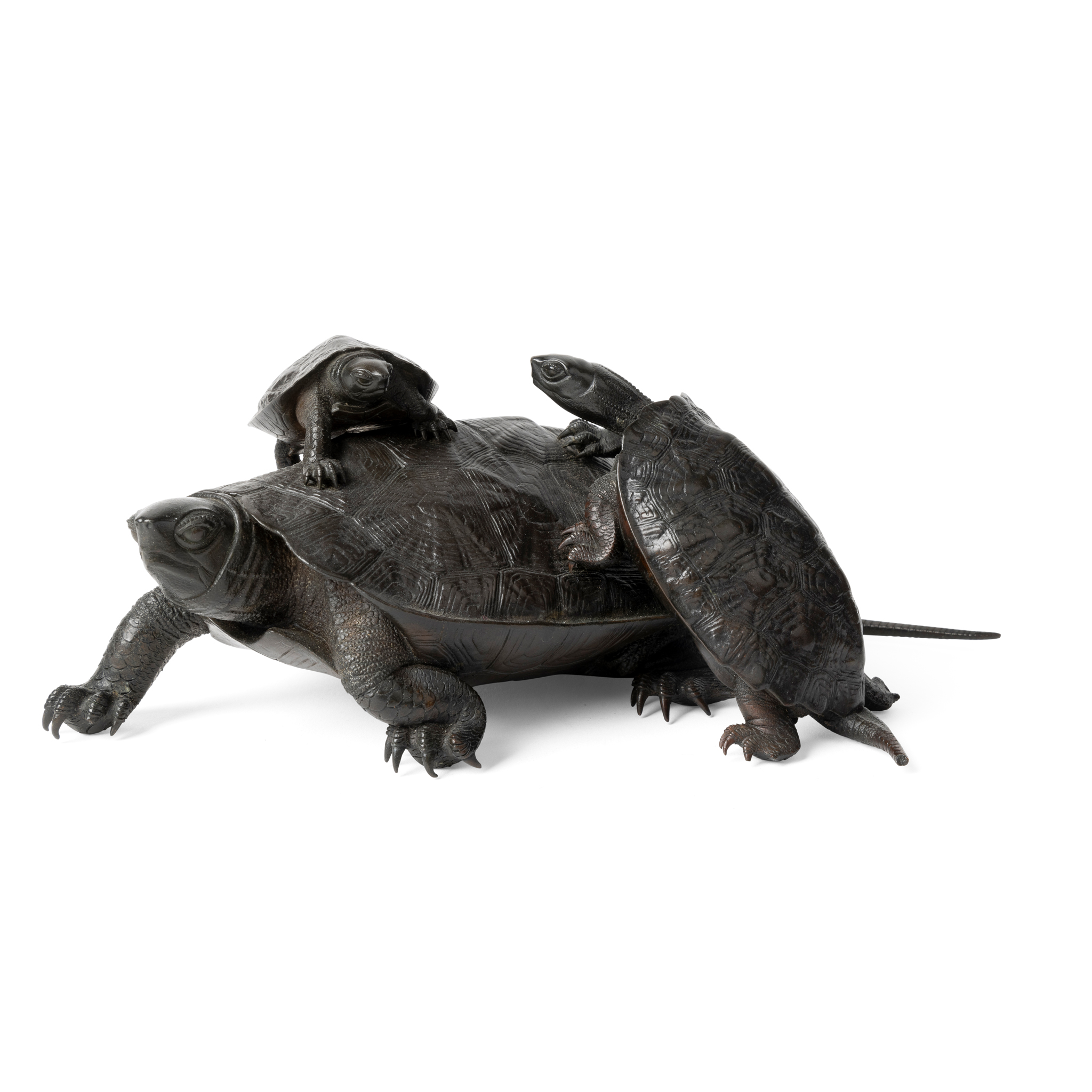 [PRIVATE ENGLISH COLLECTION, SOMERSET] JAPANESE BRONZE OKIMONO GROUP OF THREE TURTLES