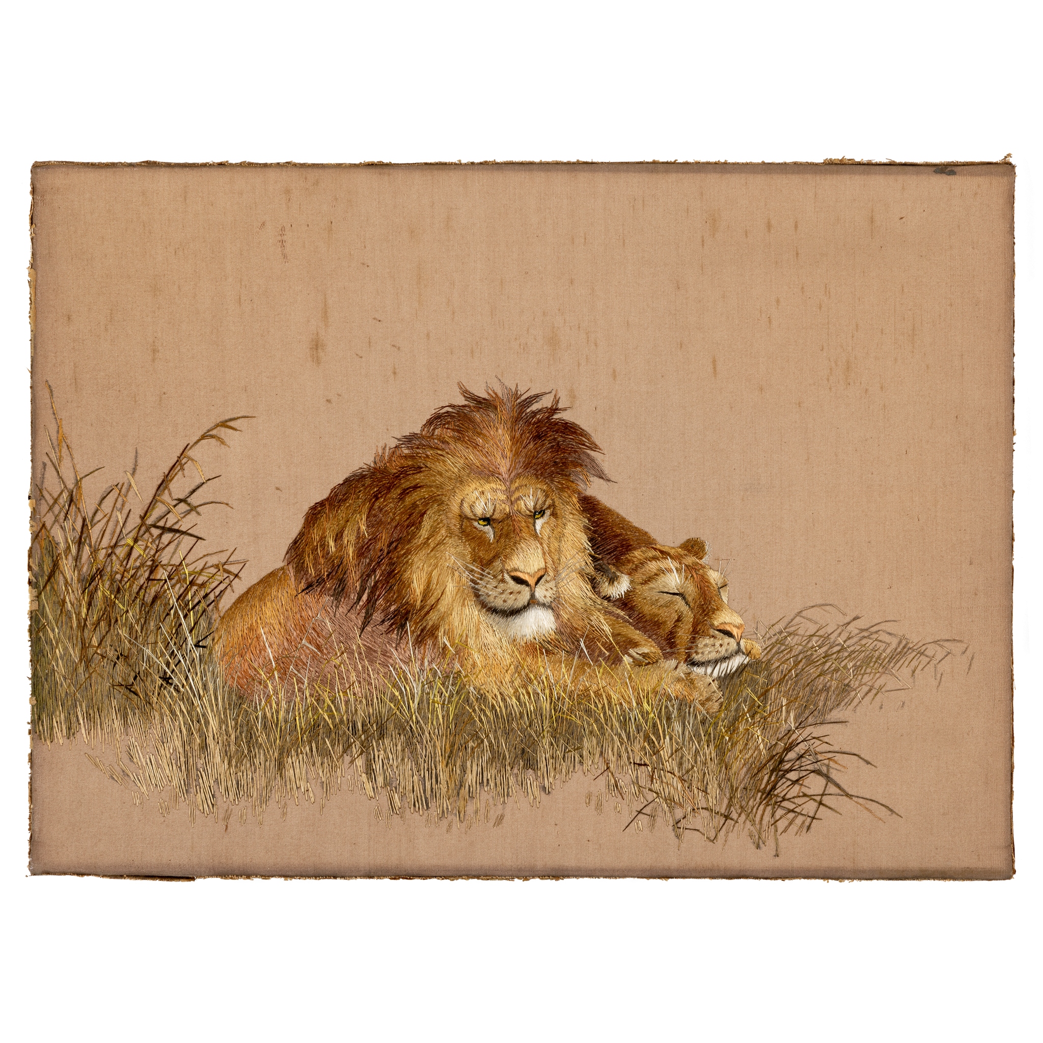 [PRIVATE ENGLISH COLLECTION, SOMERSET] JAPANESE SILK EMBROIDERED 'LION' PANEL