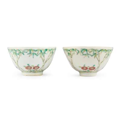TWO CHINESE FAMILLE ROSE 'BAMBOO' CUPS