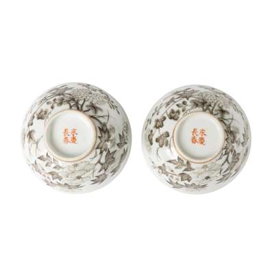清 永慶長春款 墨彩花鳥紋杯(一對)