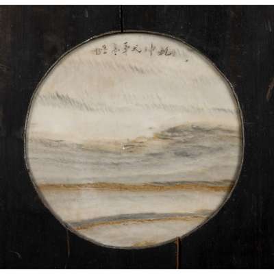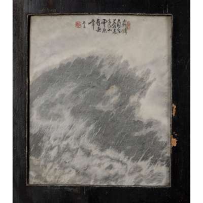 Little is known about the artists 'Shi Quan'. There are speculations that they might be the same person, also using other names like Shi Sheng, Shi Lin, Shi You, Shi Qiao, which might be Ding Huaijin (1879-1956). Comparable dreamstone inset panels, Qing dynasty 19th century, are in the Metropolitan Museum, accession no. 1995.418a–d; Also compare to a pair of 'dreamstone' marble inset panels, Qing dynasty, sold at Sotheby's London, 09 November 2016, lot 367.