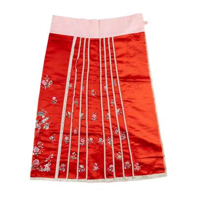CHINESE WOMAN'S RED GROUND SILK EMBROIDERED 'FLORAL' PLEATED SKIRT