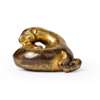 heavily cast as a recumbent creature with its head turned back resting on its tucked-in rear hind