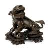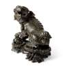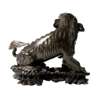 清 石叟款 銅鑄嵌銀絲佛獅擺件 帶木座