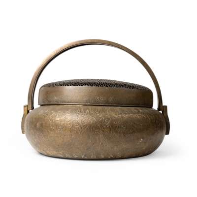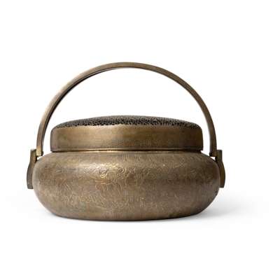 A comparable bronze hand warmer and cover, signed Zhang Mingqi, 17th century, was sold at Sotheby's New York, 21 September 2021, lot 126; Also see a bronze handwarmer and cover, Zhang Mingqi mark, late Ming dynasty, from the collection of Ulrich Hausmann, was sold at Sotheby's Hong Kong, 07 October 2014, lot 3317.