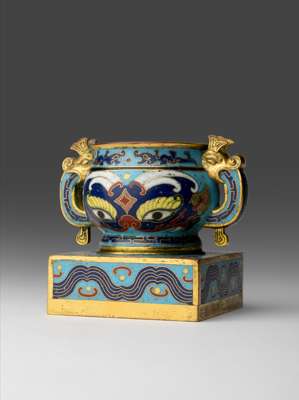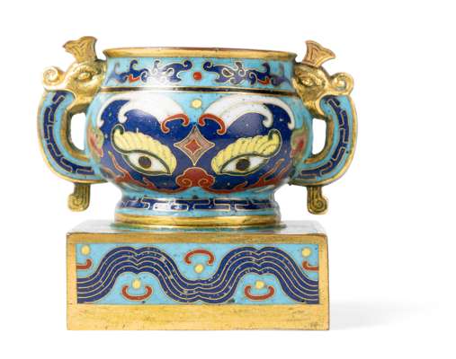 CHINESE CLOISONNÉ ENAMEL ARCHAISTIC PLATFORMED CENSER, GUI