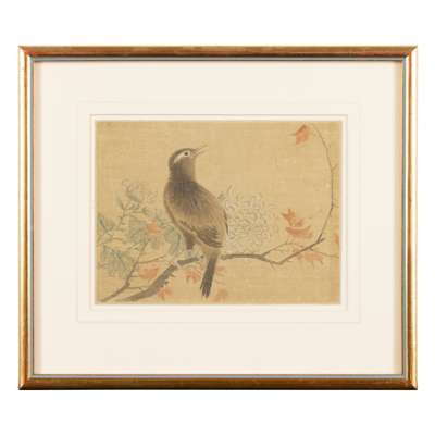 蔣廷錫款 各式花鳥松樹圖 水墨設色絹本 鏡框(共四幅)