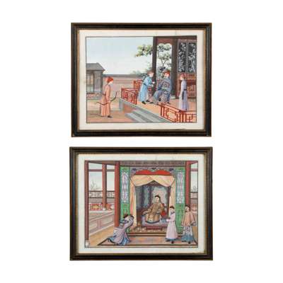 TWO CHINESE EXPORT 'COURT SCENE' PAINTINGS