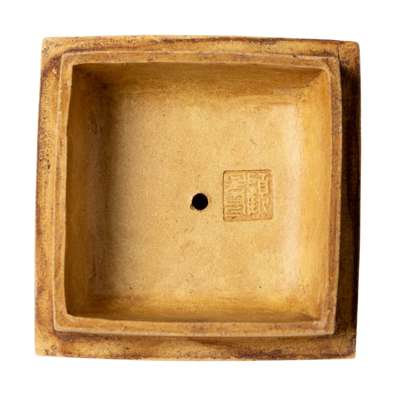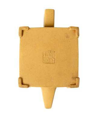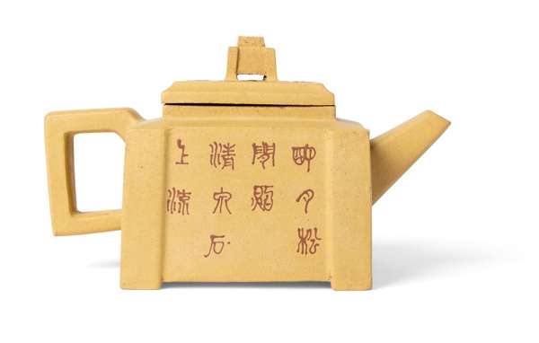 CHINESE YIXING STONEWARE SQUARE-SECTION TEAPOT AND COVER